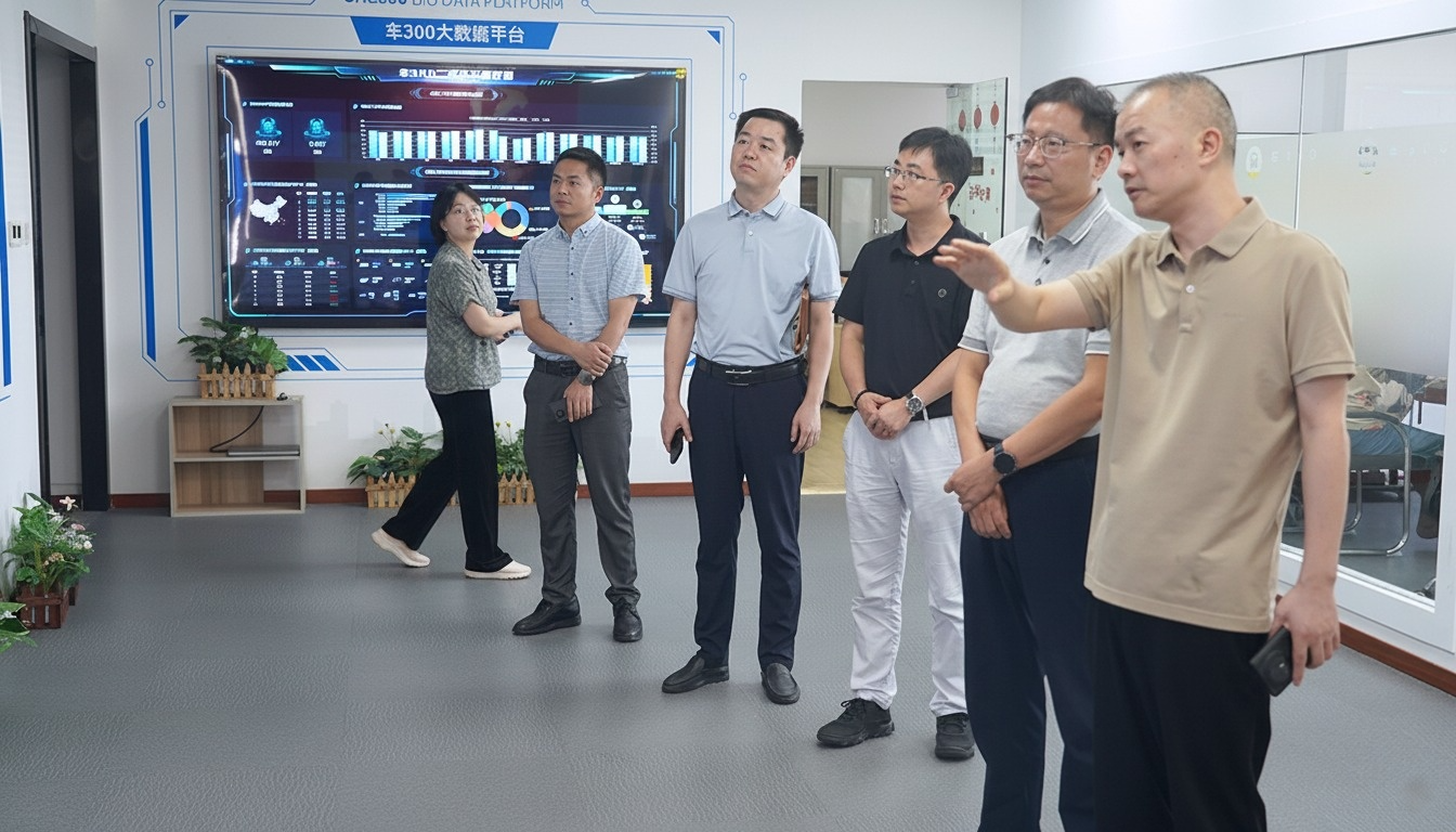 徐桓峰一行首先参观了三百云的办公区域与数字化展厅,了解企业在人工智能、金融风控等领域的创新成果与应用实践。随后,双方进行座谈交流,许伟就公司2025年以来的经营发展、国内汽车市场分析、出海业务进展以及当前面临的挑战与建议作了汇报。
