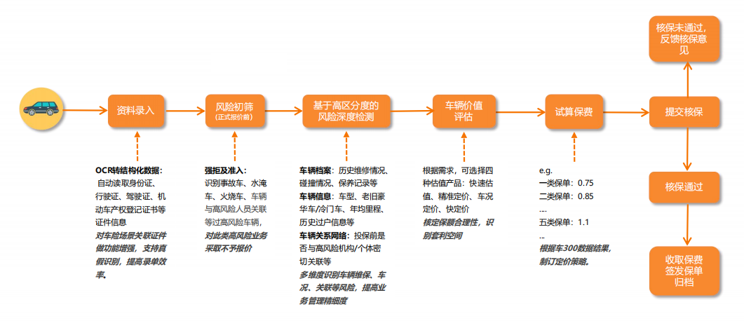方案深度融合了“车300二手车估值模型”行业标准能力,并利用超过1000万台事故车沉淀数据、豪华老旧车等专项数据库以及1400+条车险承保评级规则,赋能保险公司精准识别套利空间、防范欺诈风险。