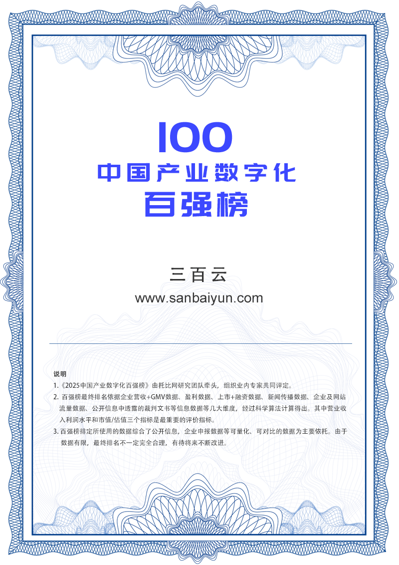 作为国内汽车金融与交易数字化服务的标杆企业,此次入围百强榜,标志着车300在产业数字化浪潮中的持续引领作用。未来,公司将以更智能的数据产品与服务,为汽车产业高质量发展注入新动能。