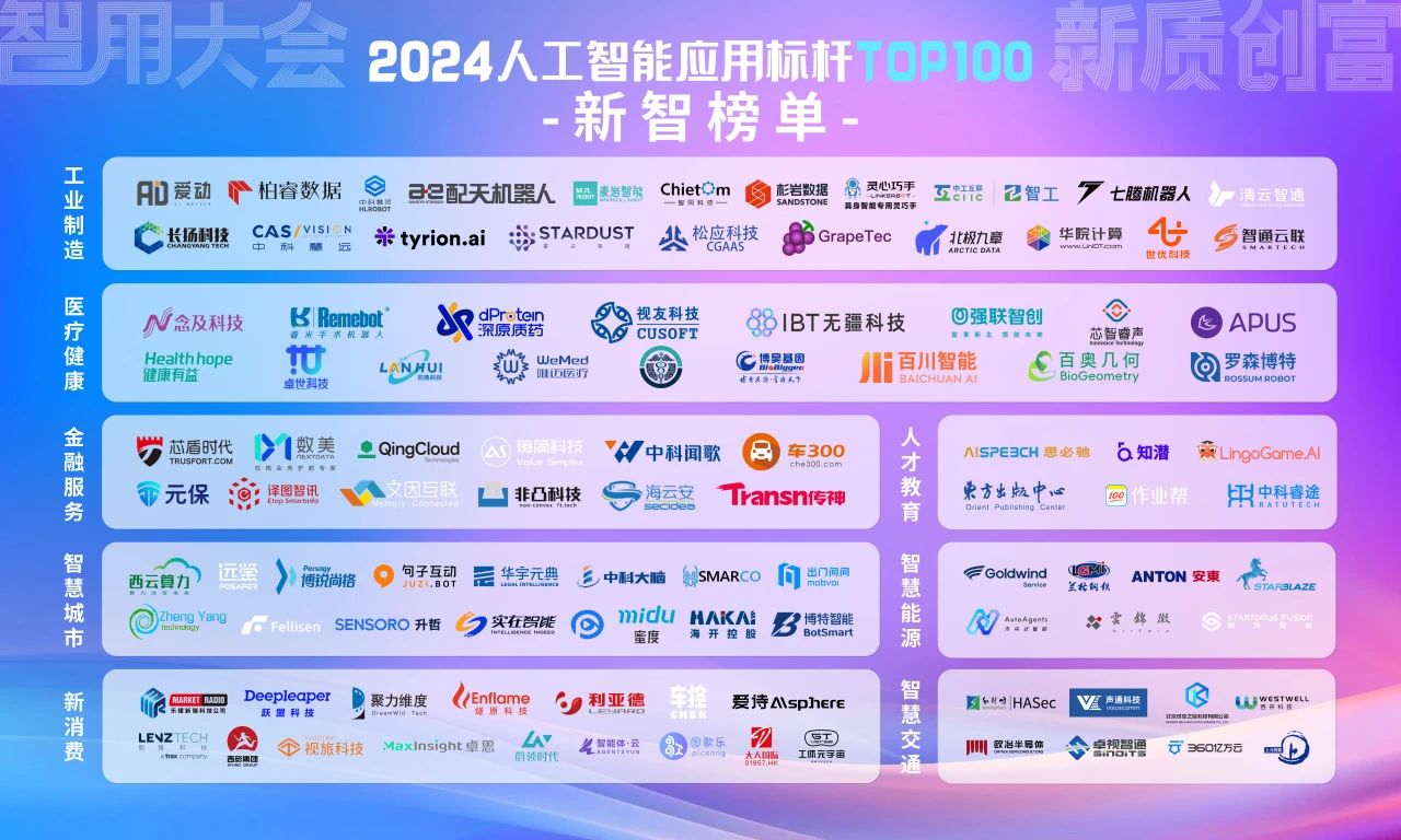 "2024中国人工智能应用标杆TOP100”新智榜单,涵盖工业制造、医疗健康、智慧城市、智慧交通、金融、能源、人才教育、新消费8大领域。新智榜单树立标杆,发挥案例的引领示范作用,构建跨行业、跨领域协同的人工智能应用新生态。未来,车300将继续坚持以客户为中心的理念,推动数字化技术的创新和应用,为企业和社会创造更大的价值。
