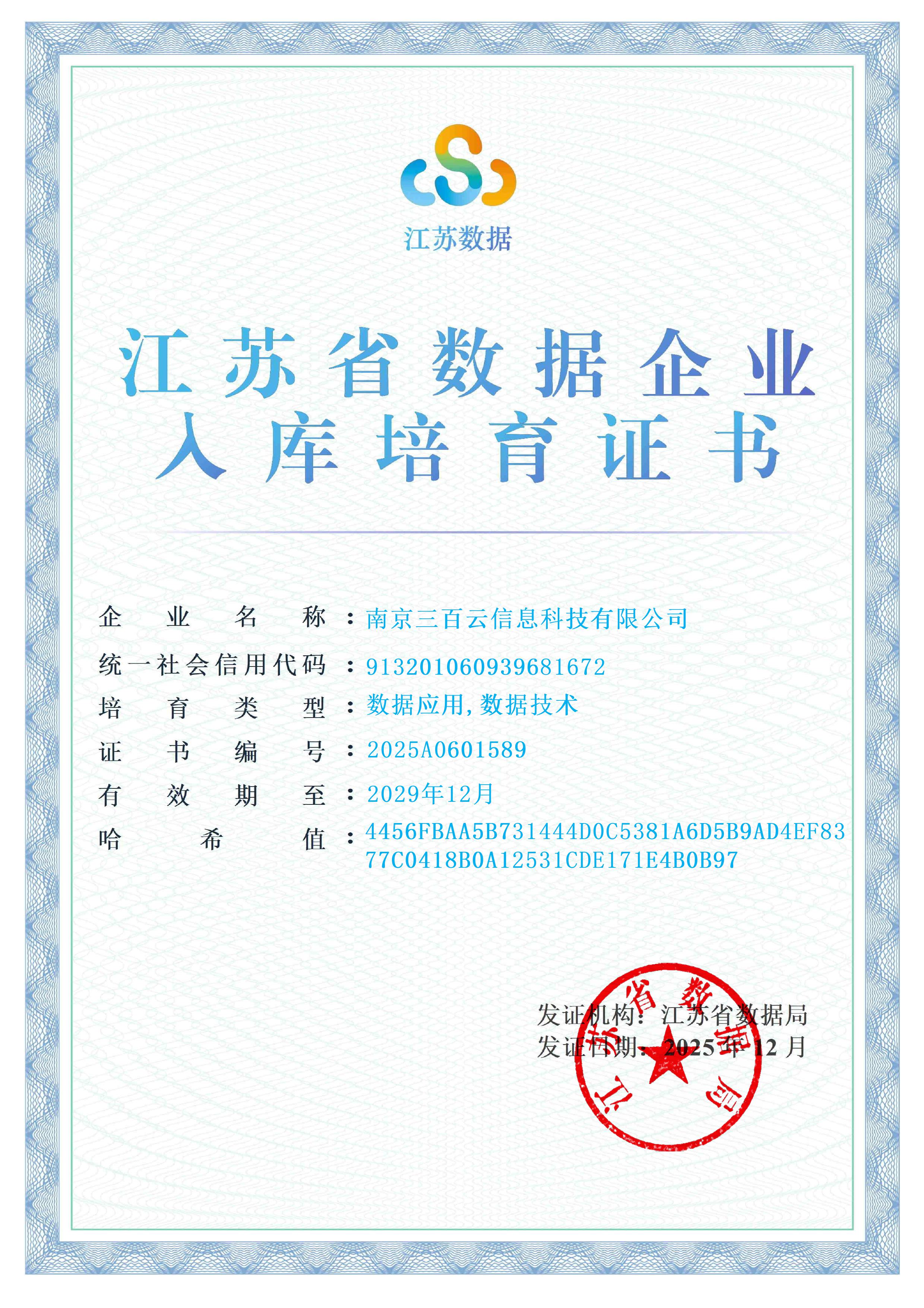 三、入选江苏省首批入库培育数据企业,数据实力获权威认可