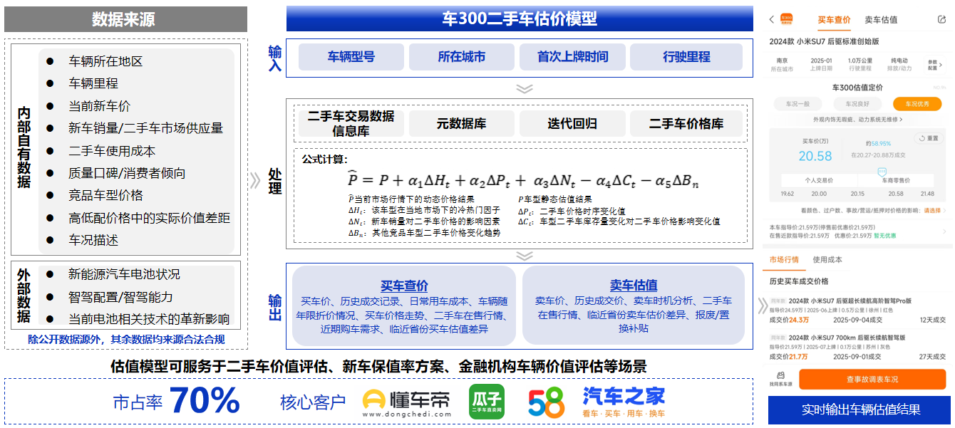 车300自主研发的“基于大数据+AI的车险数智化风险防控解决方案”,聚焦车险行业风险差异化管控,整合车辆估值、套利空间分析、车辆风险事件、维保记录等多维数据,与保险公司联合建模,从动机、能力、条件三大维度精准识别车险欺诈行为。